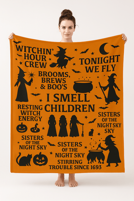 🧹 The Witchin’ Hour – Halloween Woven Blanket Celebrate spooky season in style with our...