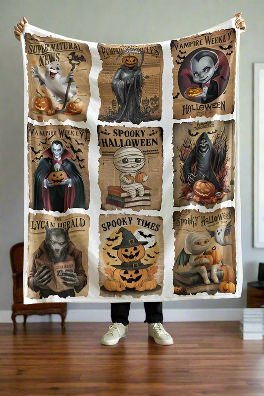 Vintage Halloween Times – Spooky Newspaper Blanket