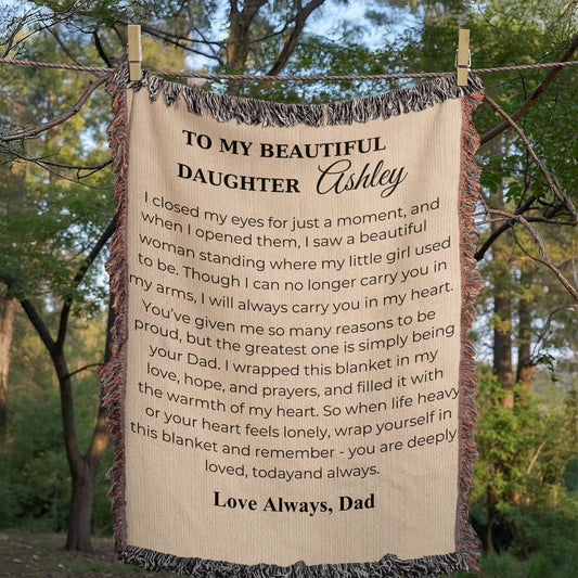 A timeless message. A beautiful heirloom. A father's love woven into every thread.Wrap your daughter...