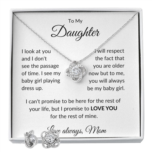 To My Daughter Love Mom - Love Knot Necklace & Earring Set