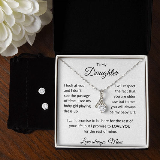 To My Daughter Love Mom - Alluring Beauty Necklace & Earring Set