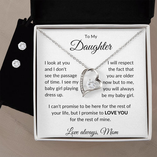 To My Daughter Love Mom - Forever Love Necklace & Earring Set
