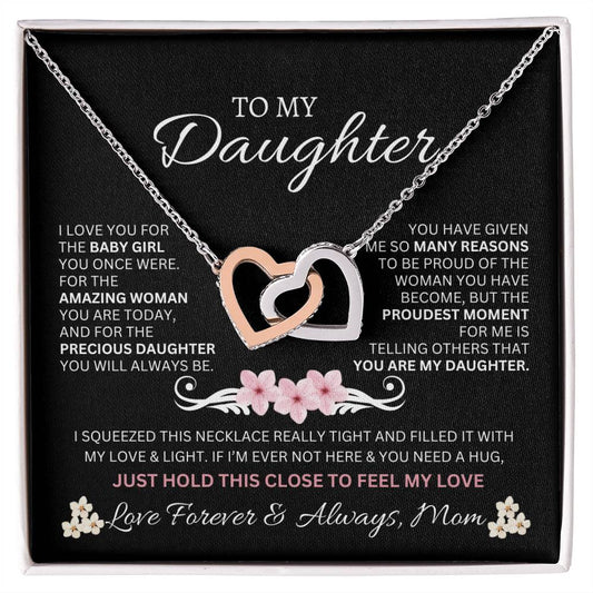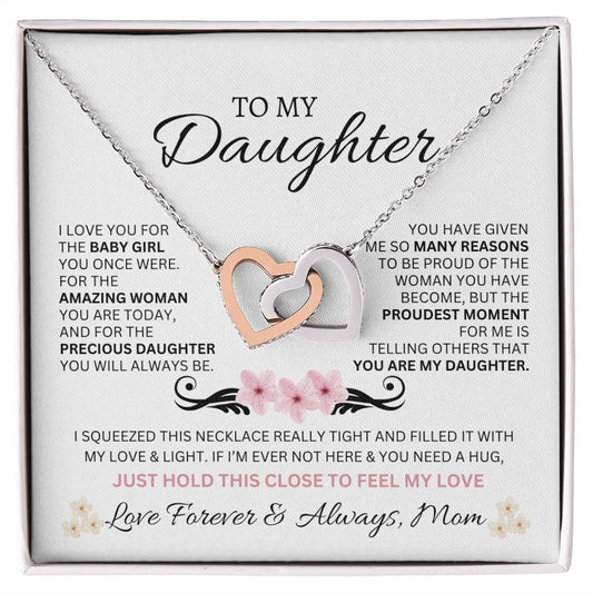 To My Daughter Love Mom - Interlocking Hearts Necklace