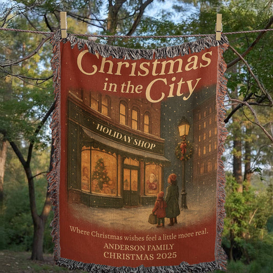 Create a magical holiday keepsake with our Christmas in the City – Personalized Family Woven...