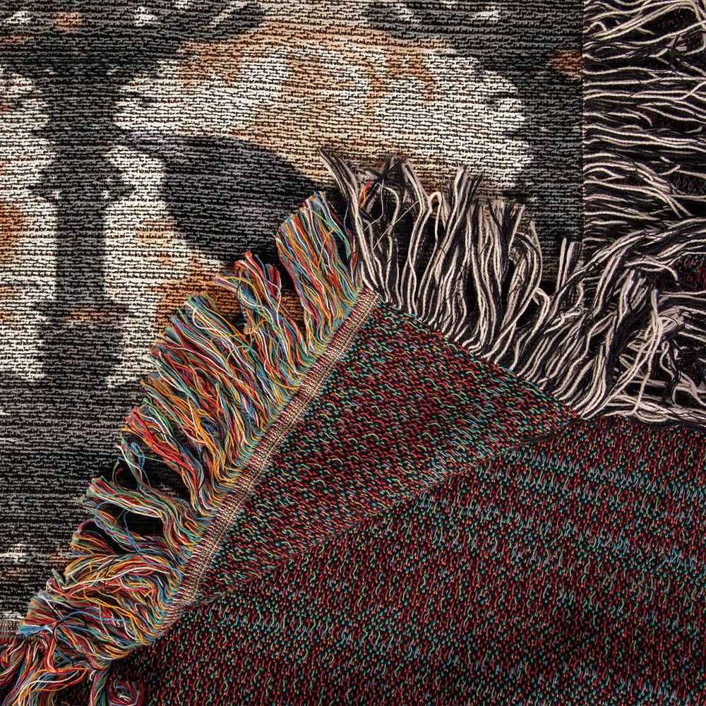 Add a touch of mystery and timeless charm to your home with the Gothic Raven Elegance Woven Blanket. Part of our Heirloom Artwork Collection, this unique piece is carefully woven on a loom with soft, 100% cotton yarn and finished with colorful fringe for a classic, decorative look.