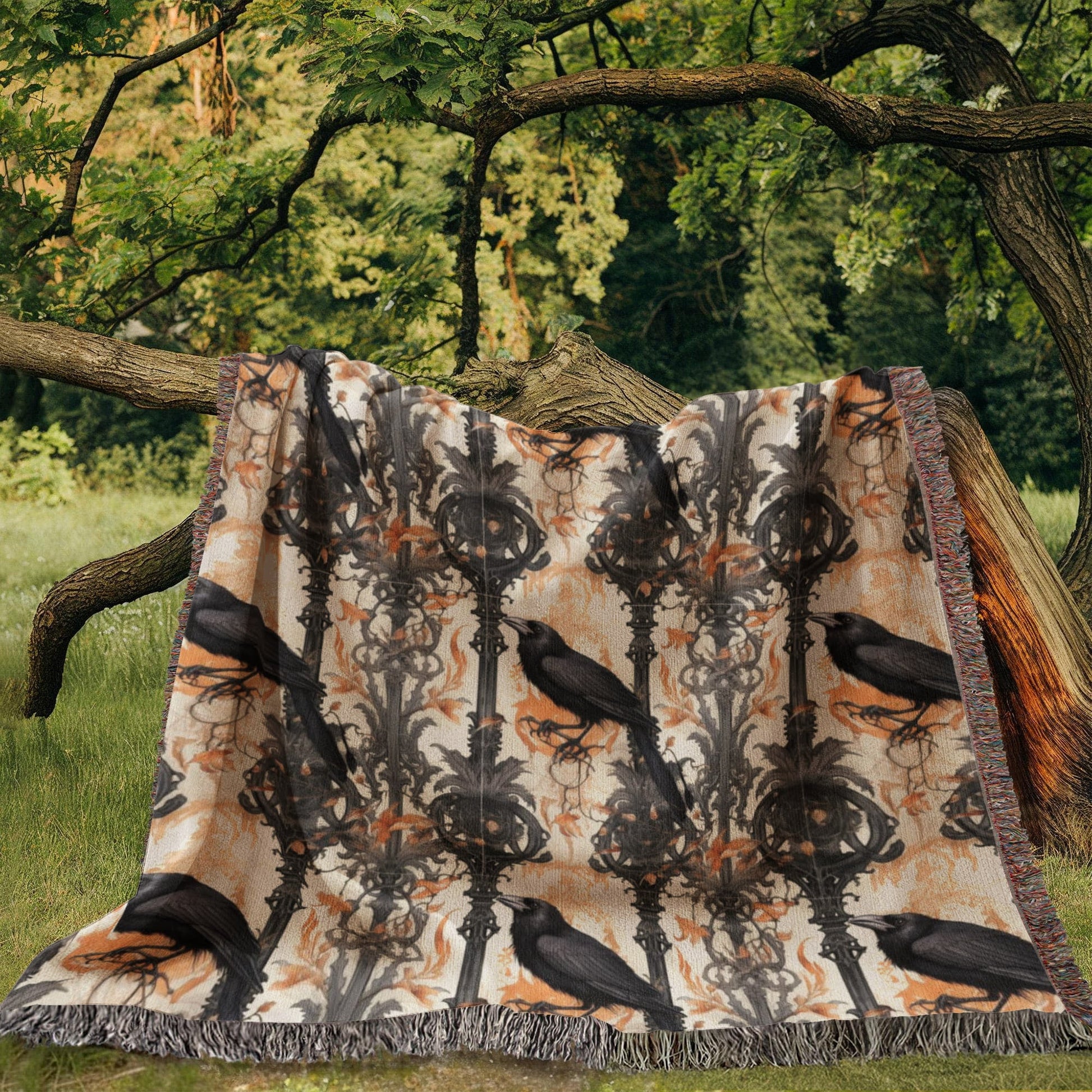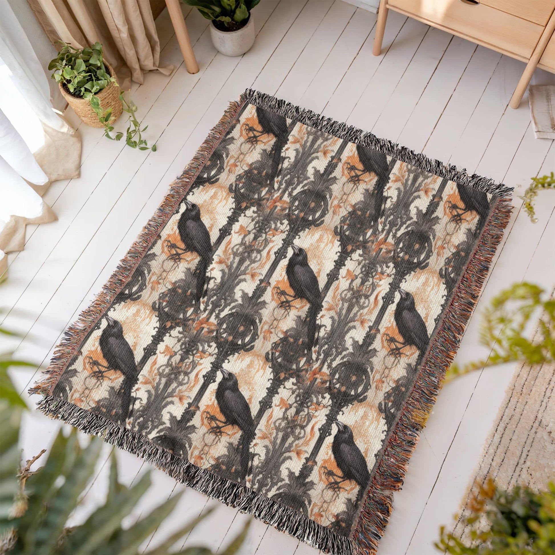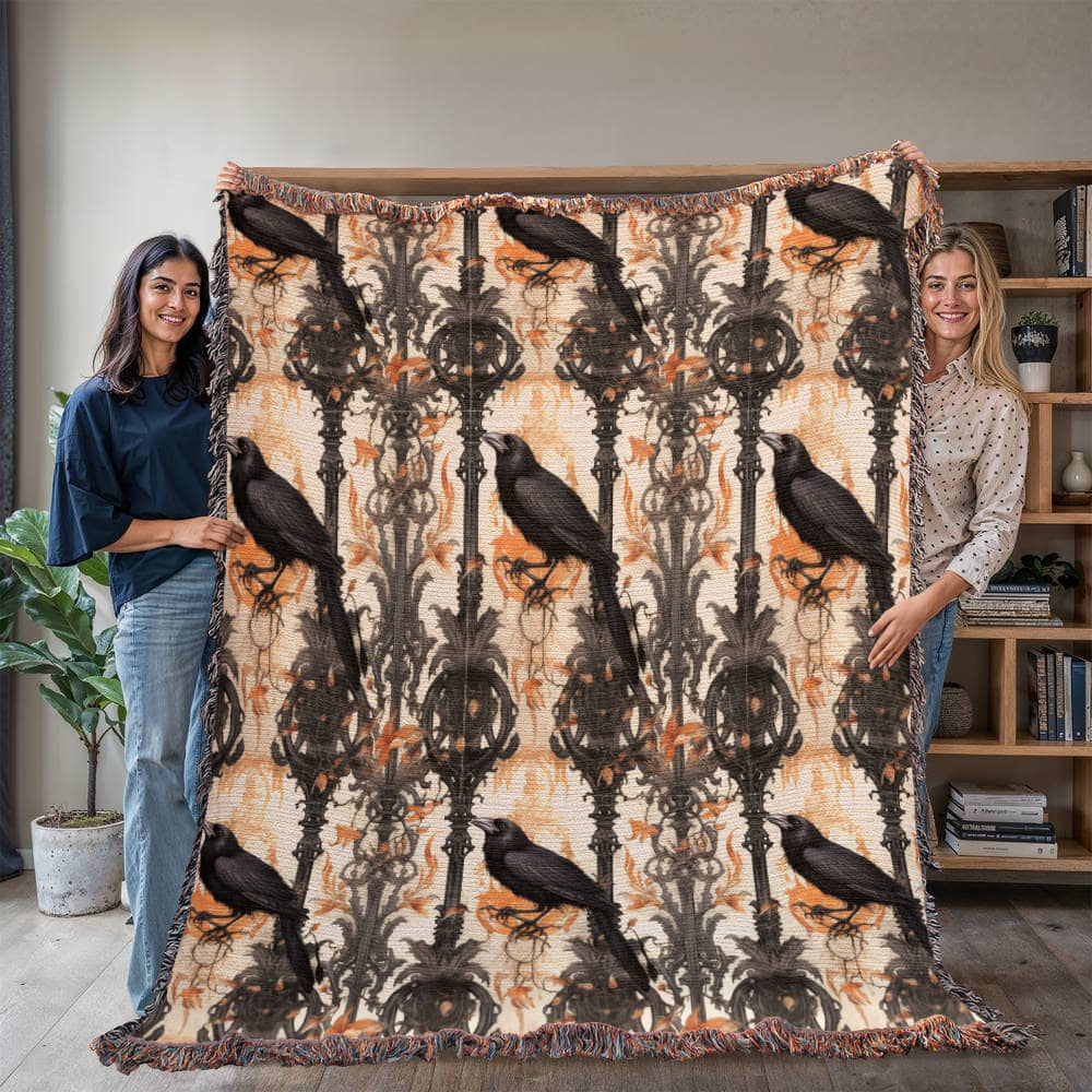 Featuring striking black ravens set against ornate gothic-inspired patterns with warm autumn accents, this blanket is both dramatic and sophisticated. Perfect for cozy evenings, seasonal décor, or as an unforgettable gift, it’s a keepsake designed to be cherished for years to come.