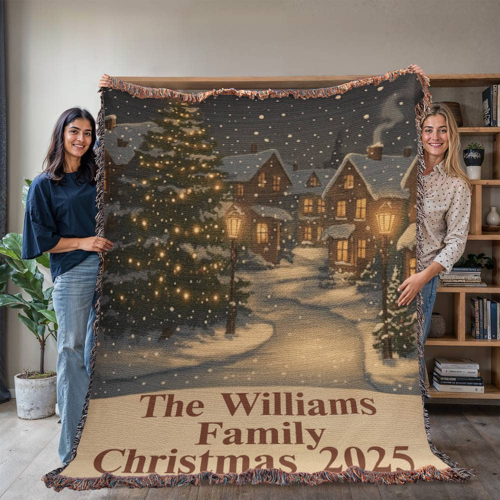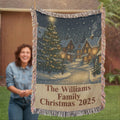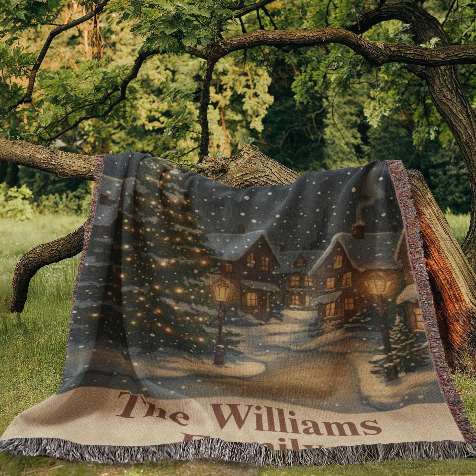 Personalized Christmas Woven Blanket – Snowy Village Design