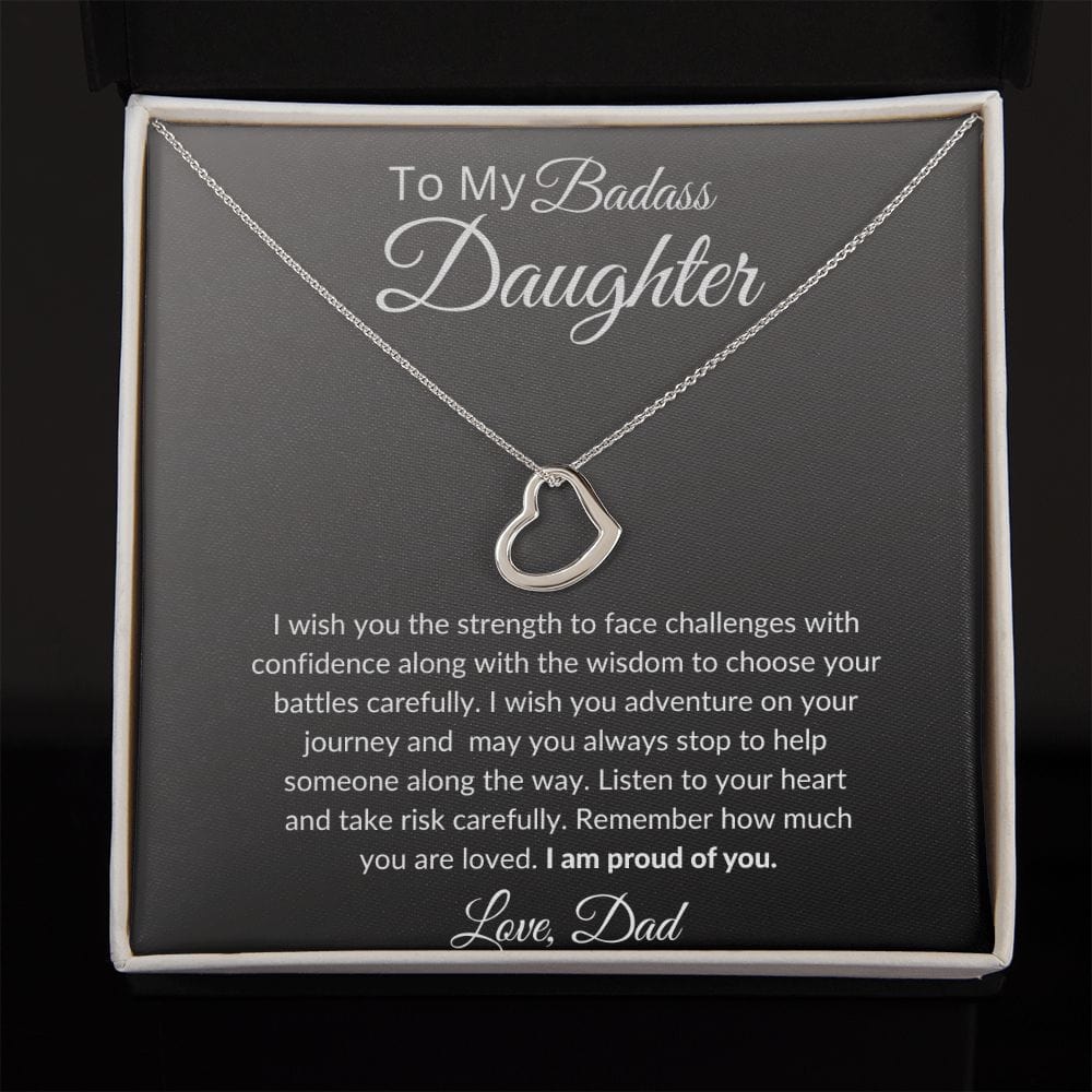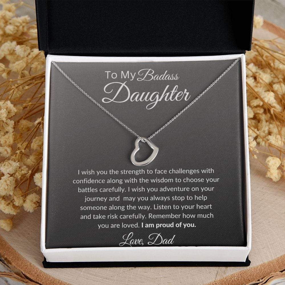 To My Badass Daughter Love Dad - Delicate Heart Necklace