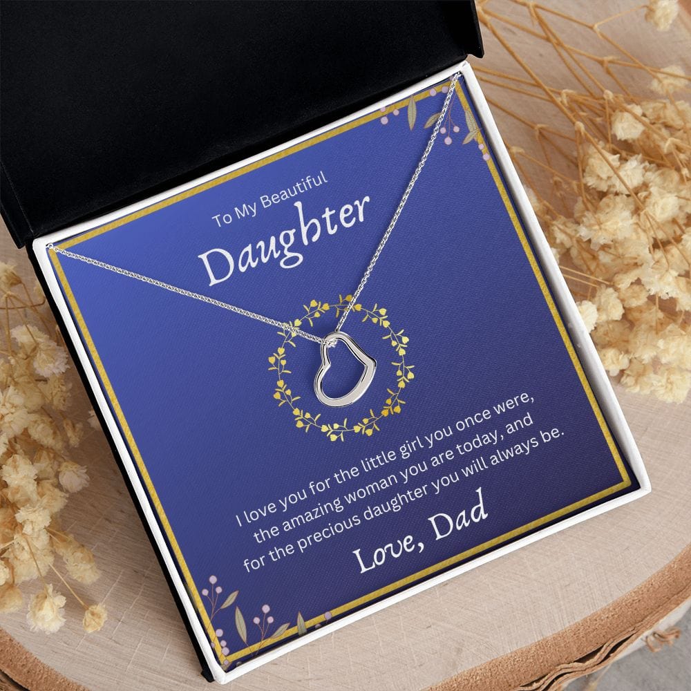 To My Beautiful Daughter Love Dad - Delicate Heart Necklace