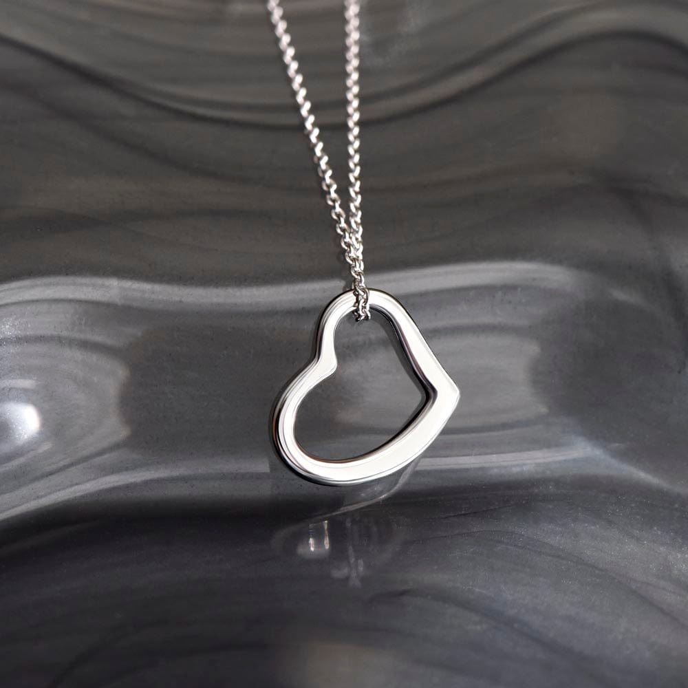 Imagine her delight when she sees this beautiful Delicate Heart Necklace, lovingly crafted in sterling silver and dipped in 14k white gold or 18k yellow gold for added luxury. This piece is pure elegance wrapped up in timeless simplicity. Trends may come and go, but this piece will last a lifetime with its classic subtle beauty.