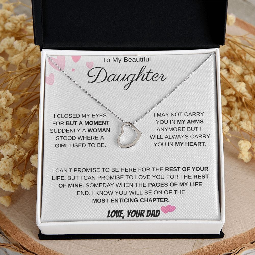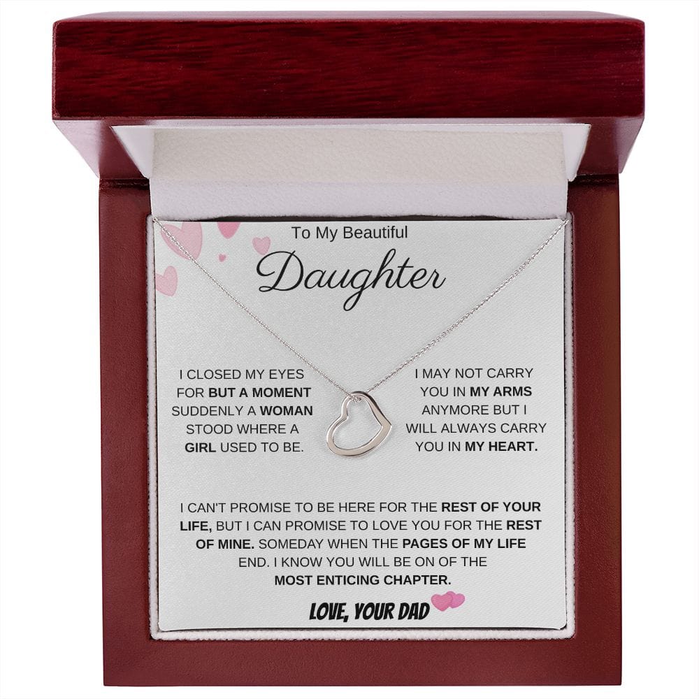 To My Beautiful Daughter Love Dad- Delicate Heart Necklace