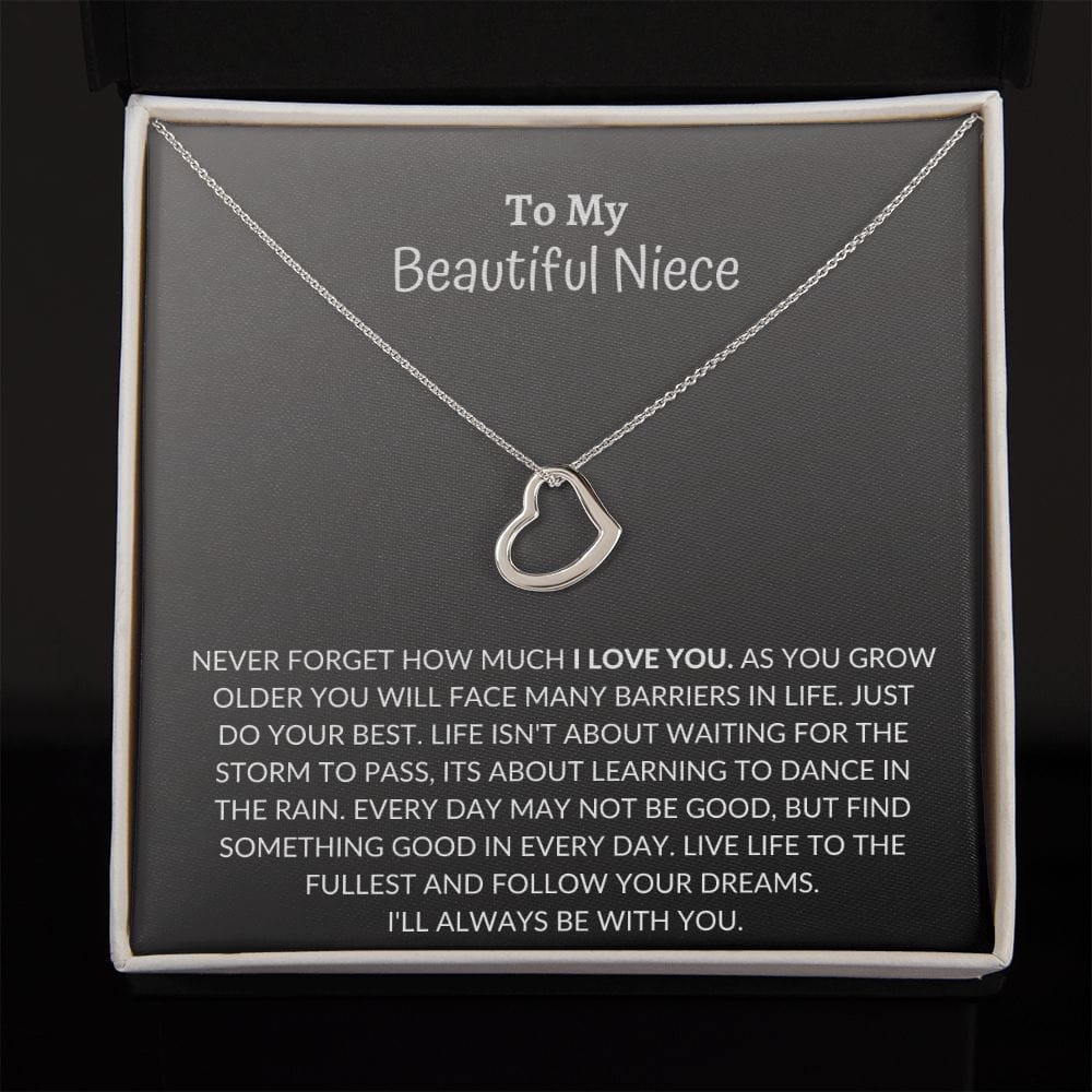 Imagine her delight when she sees this beautiful Delicate Heart Necklace, lovingly crafted in sterling silver and dipped in 14k white gold or 18k yellow gold for added luxury. This piece is pure elegance wrapped up in timeless simplicity. Trends may come and go, but this piece will last a lifetime with its classic subtle beauty.