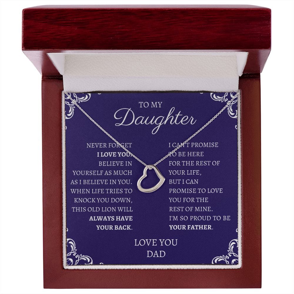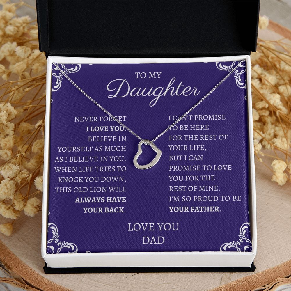 Imagine her delight when she sees this beautiful Delicate Heart Necklace, lovingly crafted in sterling silver and dipped in 14k white gold or 18k yellow gold for added luxury. This piece is pure elegance wrapped up in timeless simplicity. Trends may come and go, but this piece will last a lifetime with its classic subtle beauty.