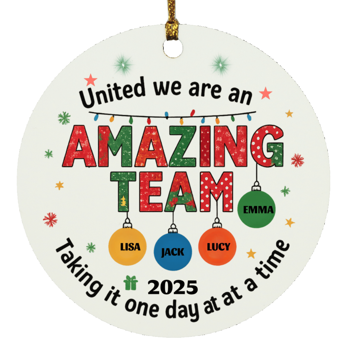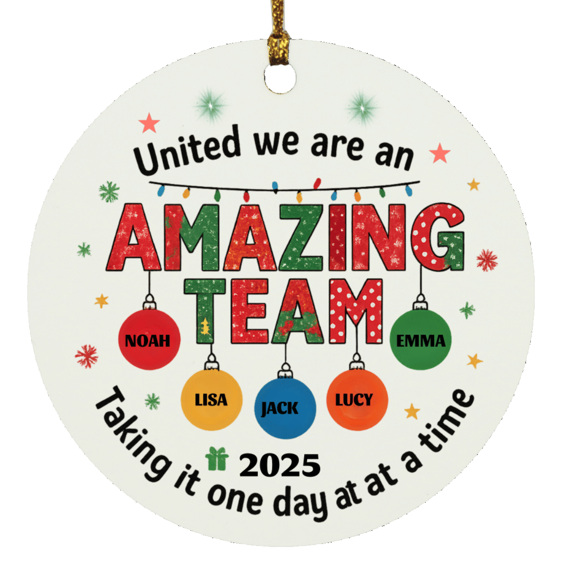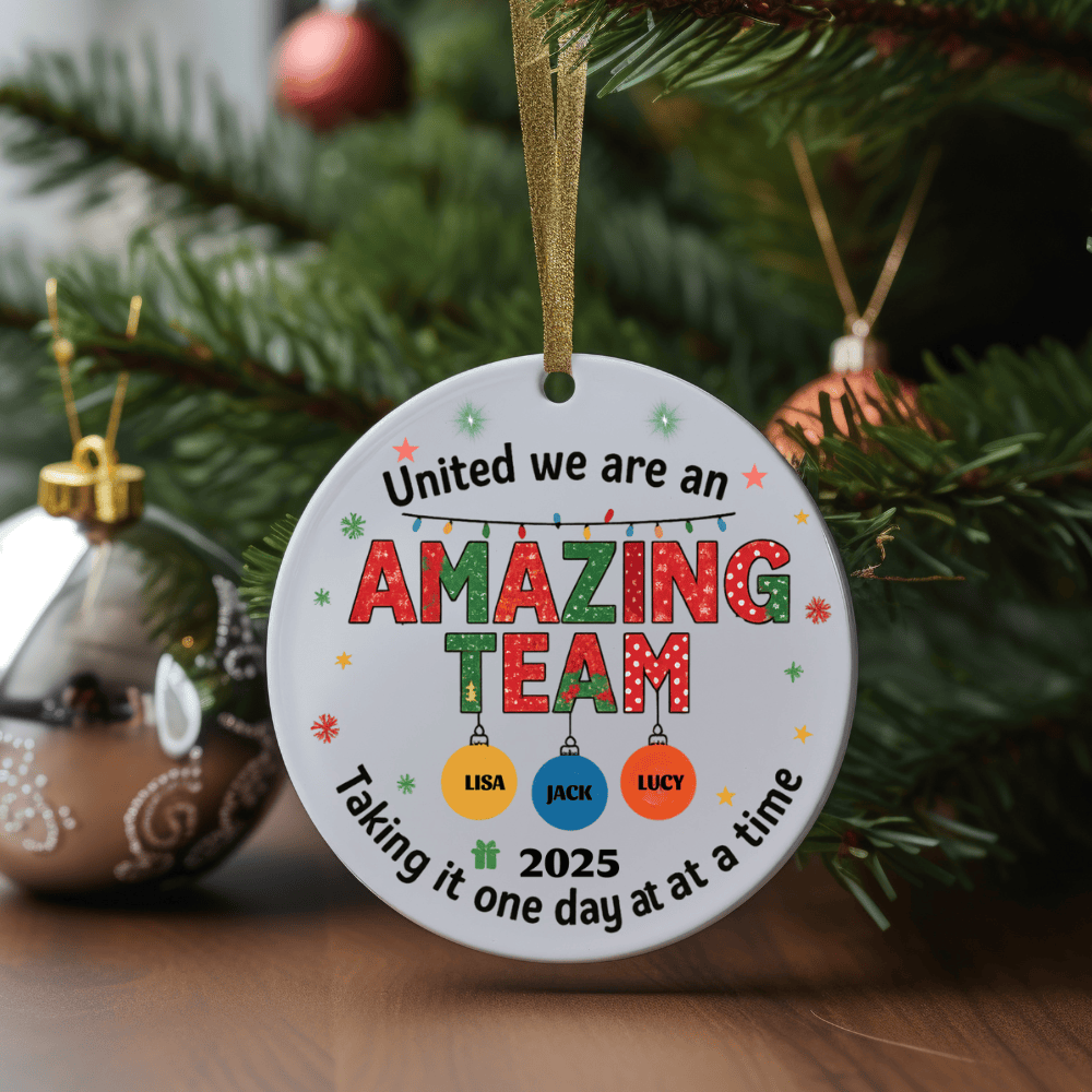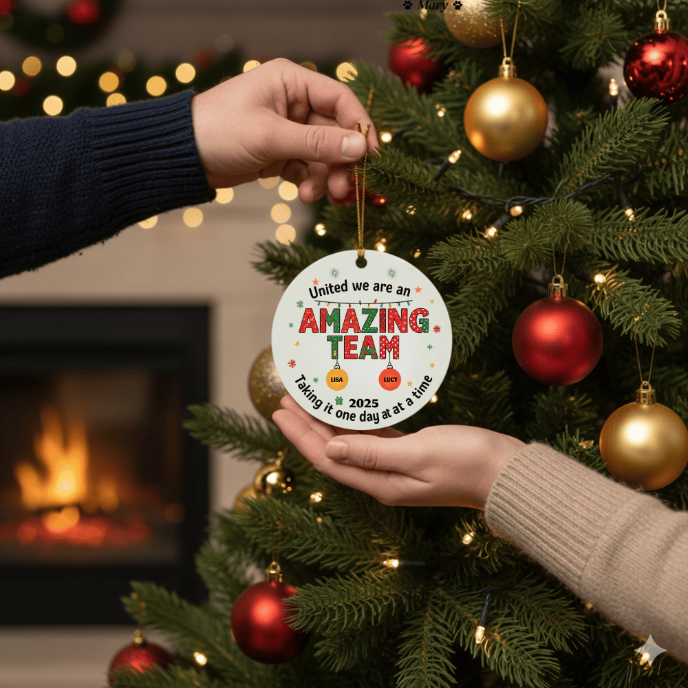 ✨ Personalized with your team members' names and the year "2025", this keepsake is a heartfelt way to celebrate unity, hard work, and the magic of teamwork during the holidays.