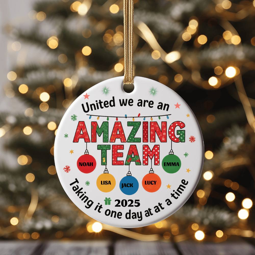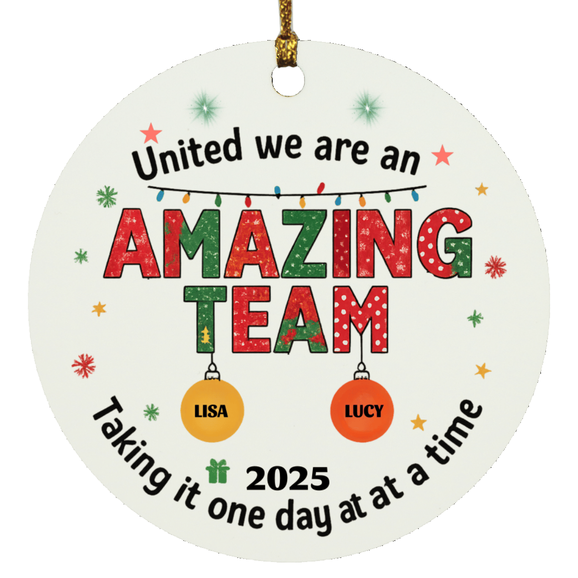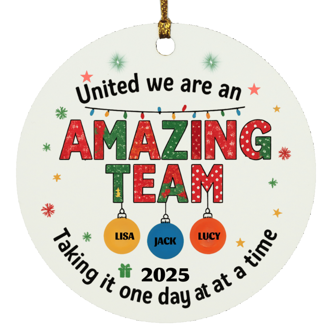 ✨ Personalized with your team members' names and the year "2025", this keepsake is a heartfelt way to celebrate unity, hard work, and the magic of teamwork during the holidays.