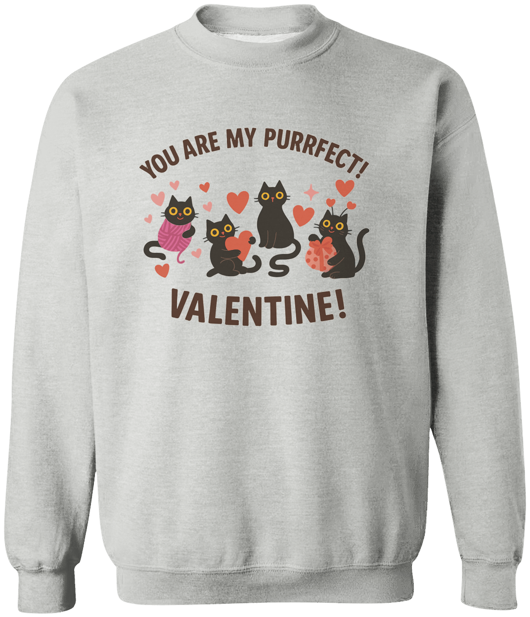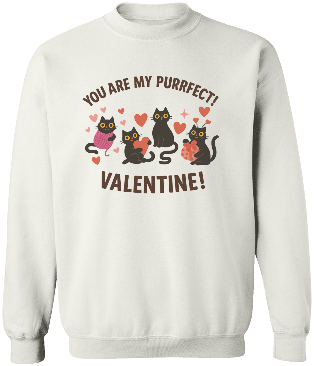 Wrap yourself in love (and a little kitty cuteness) with our You Are My Purrfect Valentine! sweatshirt—made for cozy date nights, Galentine’s fun, or gifting your favorite cat lover.